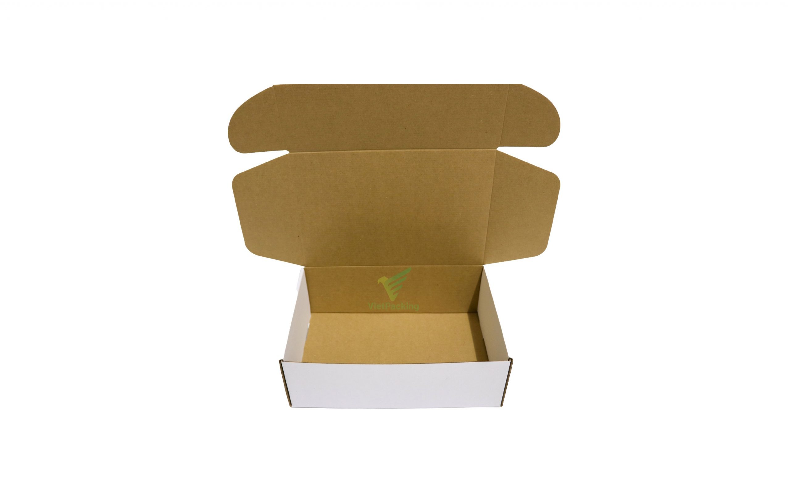 Hộp dạng nắp gài màu trắng cơ bản vừa tiện lợi vừa tiết kiệm.